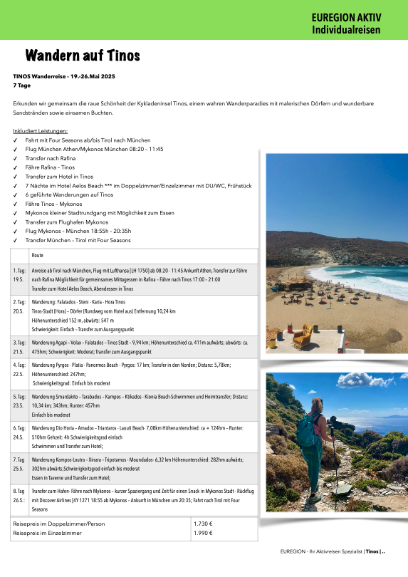 Tinos, Kykladen Wandern; Mai 2025